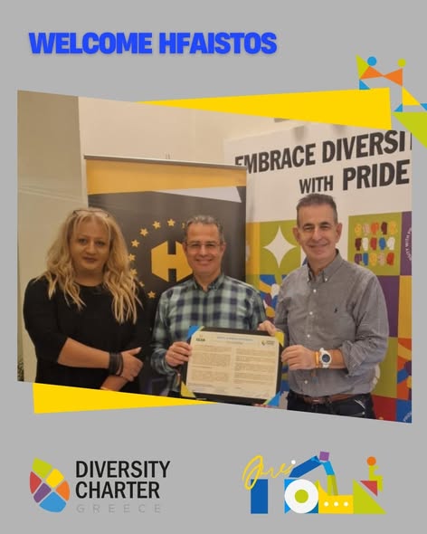 Η συμμετοχή του Ήφαιστου στο Diversity Charter Greece αποτελεί ένα ακόμη σημαντικό βήμα για την προώθηση περιβαλλόντων χωρίς αποκλεισμούς, όπου η διαφορετικότητα αναγνωρίζεται ως θεμελιώδης αξία. Μέσα από αυτή τη δέσμευση: