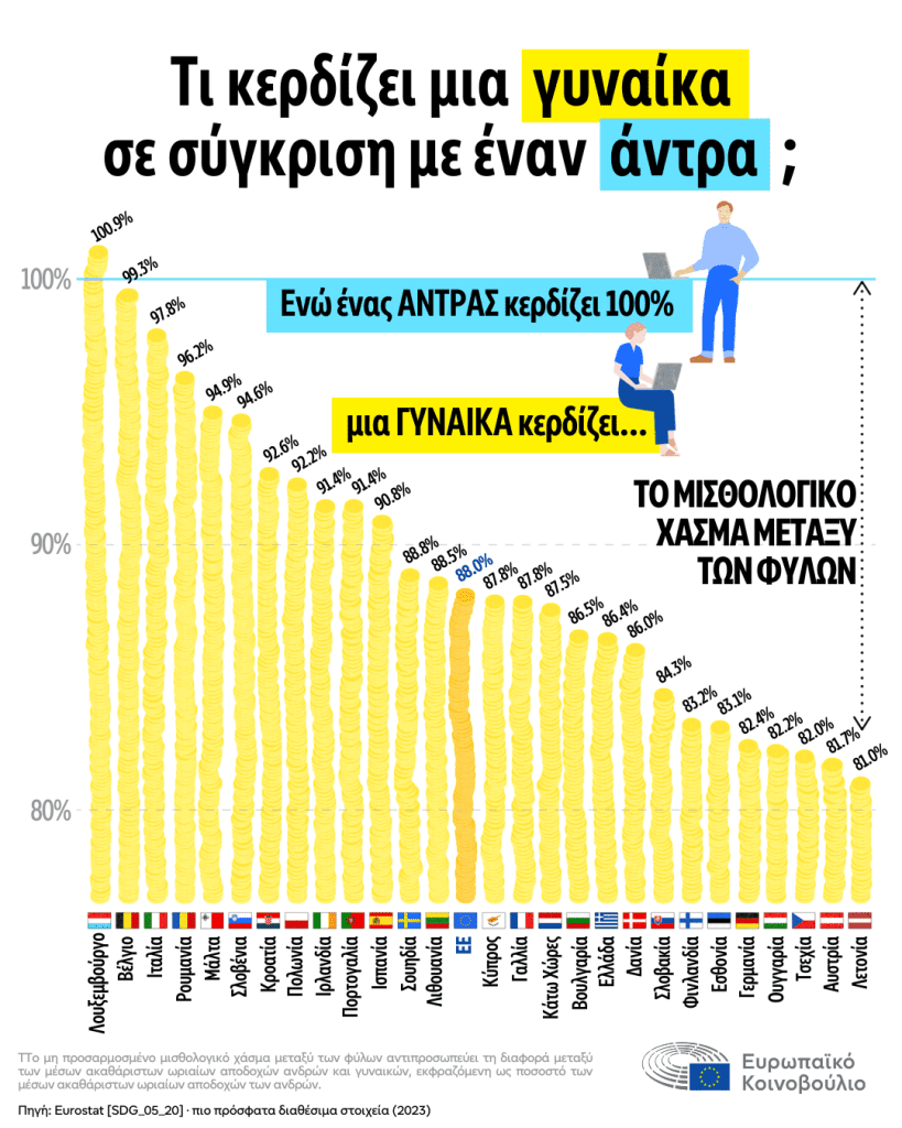 Τα στατιστικά στοιχεία ανά χώρα για το μισθολογικό χάσμα μεταξύ των φύλων στην ΕΕ
