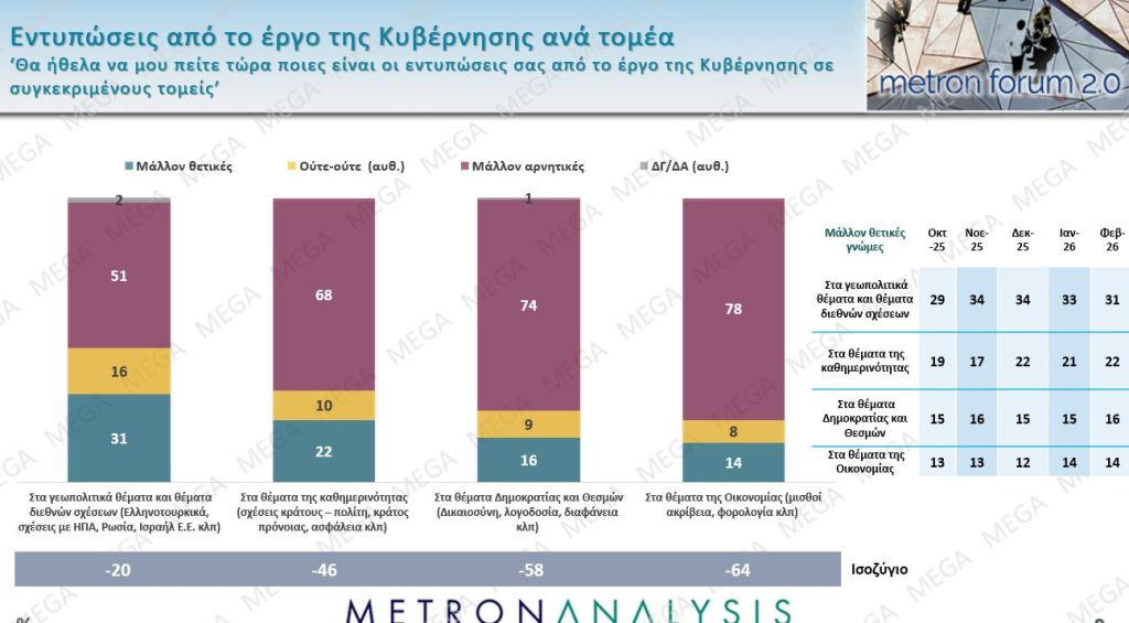 Η πρόσφατη δημοσκόπηση της Metron Analysis που παρουσιάστηκε στο δελτίο του MEGA αποτυπώνει μια κοινωνία που βιώνει έντονα συναισθήματα αβεβαιότητας — όχι όμως ενιαία, αλλά μέσα από διαφορετικές εμπειρίες, ανάγκες και ιδεολογικές τοποθετήσεις.