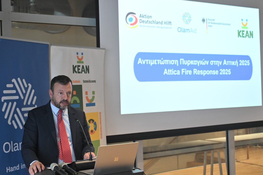 Στον χαιρετισμό τους, ο σύμβουλος και επικεφαλής Νομικών και Προξενικών Υποθέσεων της πρεσβείας της Γερμανίας στην Ελλάδα, Hans-Günter Löffler, ο Γενικός Διευθυντής της OlamAid Gal Rachman, και ο Πρόεδρος του KEAN, Σταύρος Μηλιώνης, υπογράμμισαν τον κομβικό ρόλο της διατομεακής συνεργασίας και της εθελοντικής δράσης για την πρόληψη και αντιμετώπιση πυρκαγιών, ειδικά σε περιοχές όπως η Αττική που δοκιμάζονται επανειλημμένα από την κλιματική κρίση.